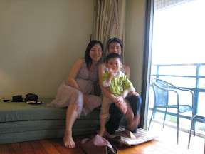 話說班爸爸要去大陸出差, 因為要用到當地門號, 所以想借一隻手機(因為勤儉持家的我們, 都是把手機用到壞掉才換, 所以並無備用手機), 在詢問過多人之後, 發現vivi姨有備用手機, 因為時間急迫, 所以只好假日去拿, 剛好又遇到vivi姨要去石門福華度假, 所以在龜毛了一天之後, 我們一家三口決定加入度假之旅, 雖然覺得住石門怪怪的, 畢竟這麼近(車程只有30分鐘), 但是也有2年沒和朋友一起去玩了, 在上網survey一下之後, 雖然要價5000元(住宿和晚餐), 不過看起來也還不賴, 湖view和客房都不錯的樣子, 加上爸鼻聰明的在當天才訂房, 還享受到平日價, 於是就浩浩蕩蕩的出發前往石門.......